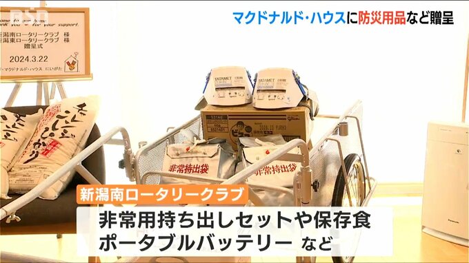 病気と闘う子どもと家族のための滞在施設『ドナルド・マクドナルド・ハウス』に、新潟市のロータリークラブが防災用品などを寄贈しました。