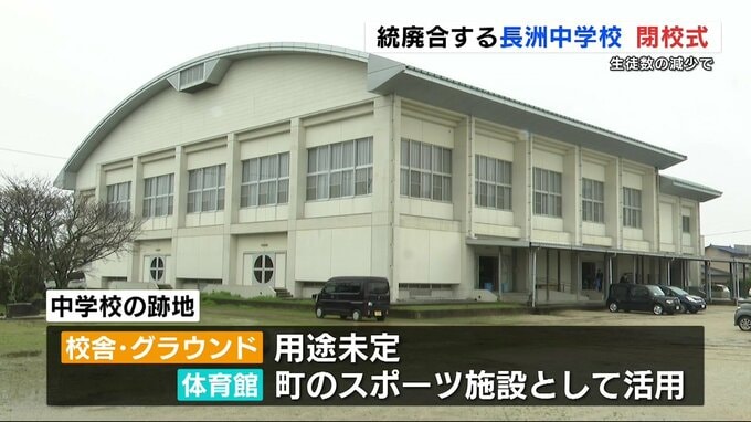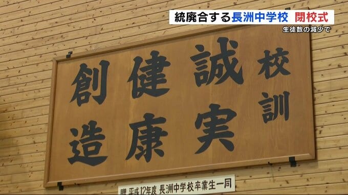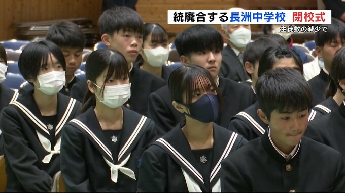 生徒数の減少を理由に統廃合する熊本県長洲町の中学校で閉校式が行われました。