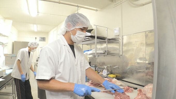 最初は、豚肉がスーパーでいくらで売られているかも知らなかった。先輩従業員から養豚や肉のさばき方を一から教わって、早朝4時半から精肉作業を行う毎日がスタートした。