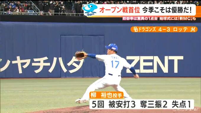 オープン戦最終盤はロッテとの3連戦。初戦22日金曜日は立浪監督に開幕投手を告げられた柳裕也投手(29)。5回を投げて打たれたヒットは3本、1失点と好投を見せ、開幕戦に向け準備万端です。