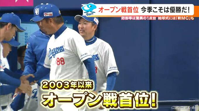 これでドラゴンズは、なんと2003年以来のオープン戦首位。防御率も12球団中唯一の1点台と投手陣の仕上がりが光りました。