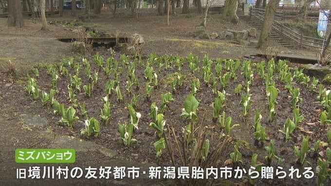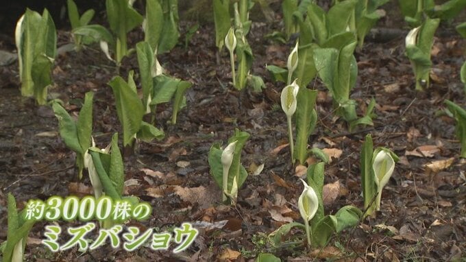 山梨県笛吹市で約3000株のミズバショウが見頃を迎えました。