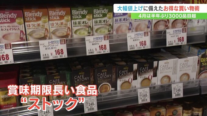 値上げによる家計への影響を少しでも抑えるため、今おすすめするのは賞味期限の長い商品の「ストック」です。