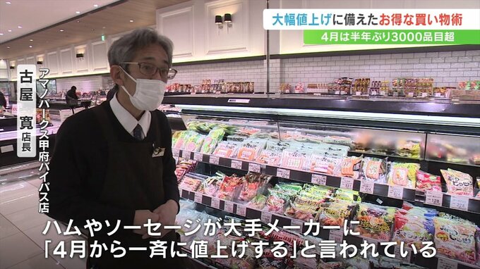 4月は半年ぶりの大幅な食品の値上げが見込まれるなか、食品スーパーに今お得な買い物術を聞きました。