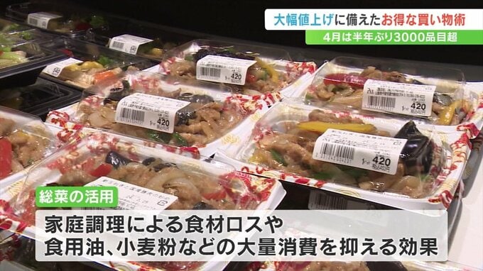 食べきる分だけ総菜を購入することで家での調理による食材ロスや値上げが続く食用油や小麦粉などの大量消費を抑える効果があるとしています。