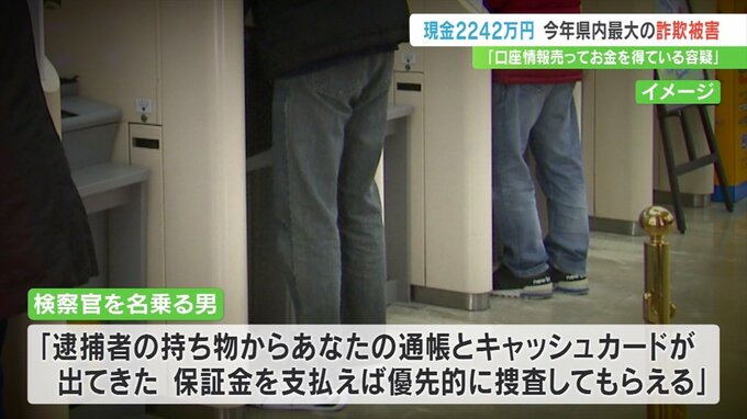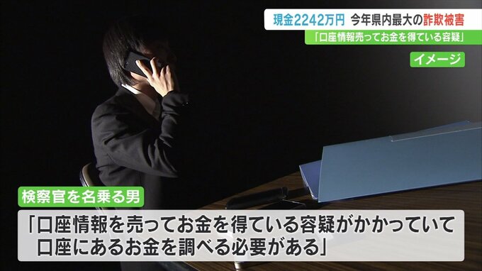 その後、検察官を名乗る男に「口座情報を売ってお金を得ている容疑がかかっていて口座にあるお金を調べる必要がある」などと言われました。
