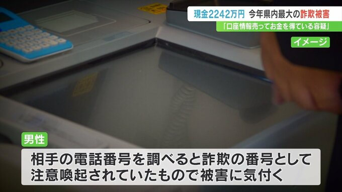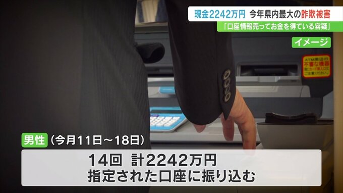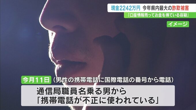 「口座情報を売ってお金を得ている容疑がかかっている」という電話を信じた男性が、現金2242万円をだまし取られました。