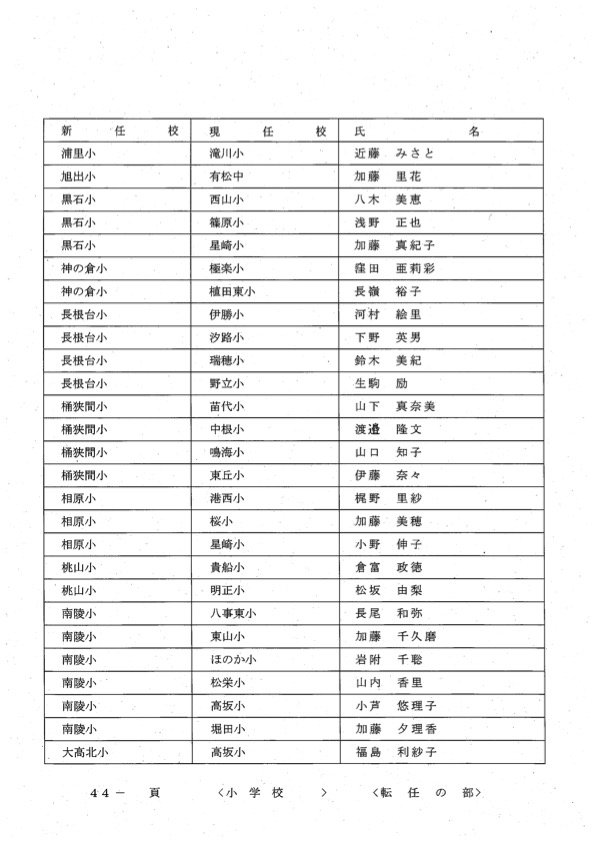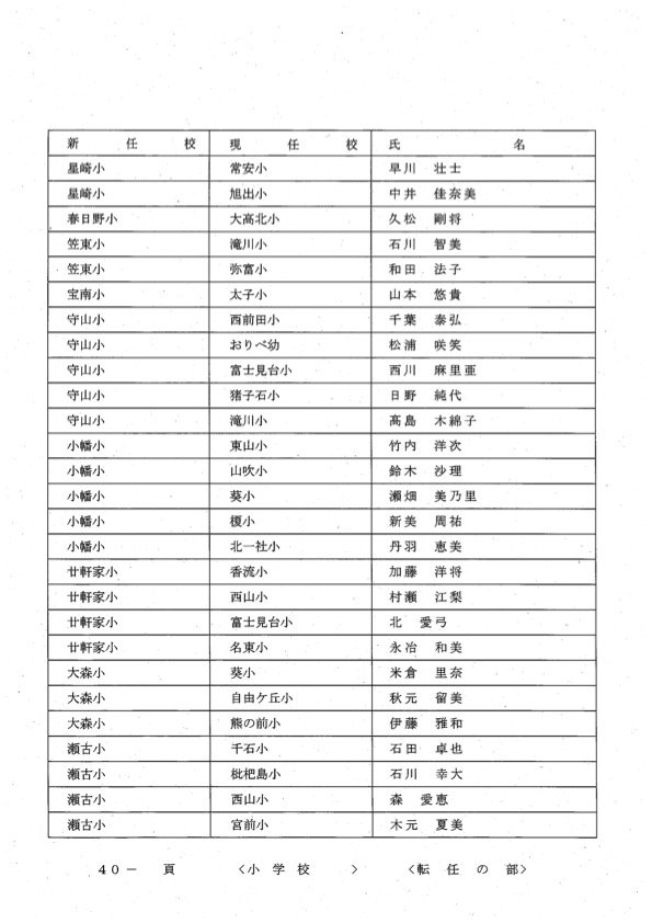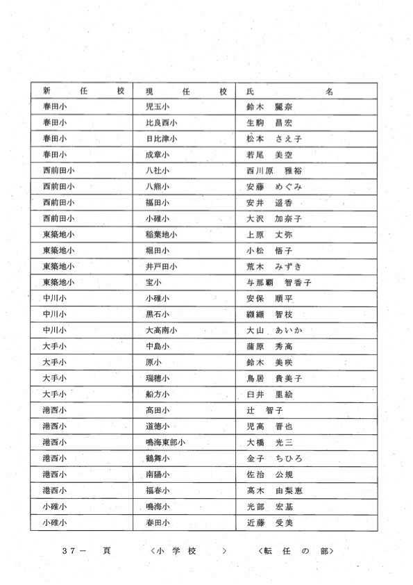 名古屋市 教職員の人事異動2024 【幼稚園・小学校の教員】【校長・教頭・主幹教諭など】「あの先生どこ行きゃ~す?」 CBCテレビ 2024年3月29日(金) 17:08 国内 小学校・転任(中川区・港区) 小学校・転任(港区) 小学校・転任(港区・南区) 小学校・転任(南区・守山区) 小学校・転任(守山区) 小学校・転任(守山区・緑区) 小学校・転任(緑区) 小学校・転任(緑区)
