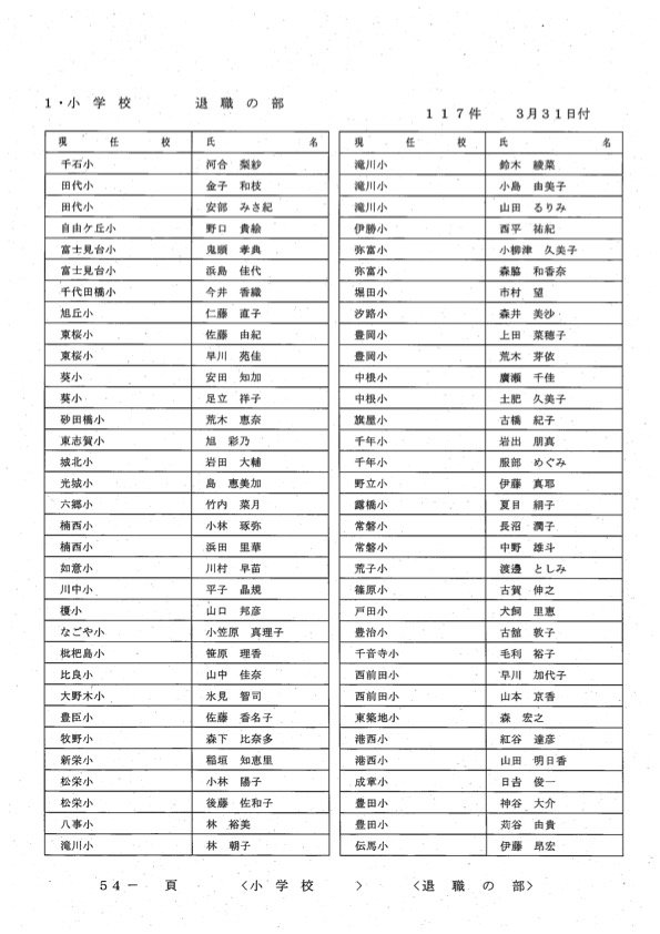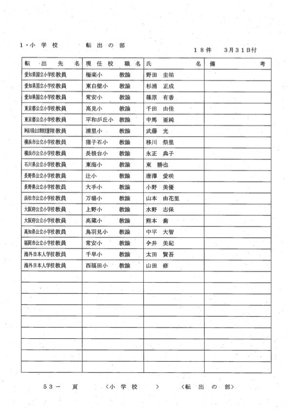 名古屋市 教職員の人事異動2024 【幼稚園・小学校の教員】【校長・教頭・主幹教諭など】「あの先生どこ行きゃ~す?」 CBCテレビ 2024年3月29日(金) 17:08 国内 小学校・転入 小学校・転入 小学校・転出 小学校・退職 小学校・退職