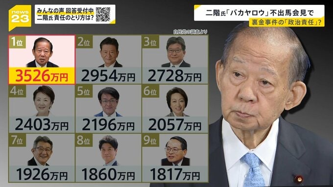 ただ、自民党の調査によると二階氏のパーティー券収入の不記載額は、最多の3526万円。