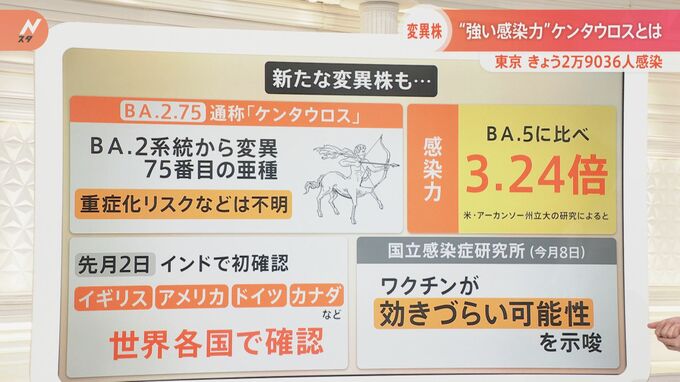 新たな変異株「BA.2」「BA.5」などはニュースでもよく聞かれますが、「BA.2」から枝分かれした75番目の亜種、通称“ケンタウロス”というふうに名づけられ、海外で報道されています。