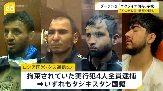 ロシア国営・タス通信などによりますと、テロ行為の疑いで拘束されていた実行犯4人全員が逮捕されました。いずれも中央アジアのタジキスタン国籍だということです。