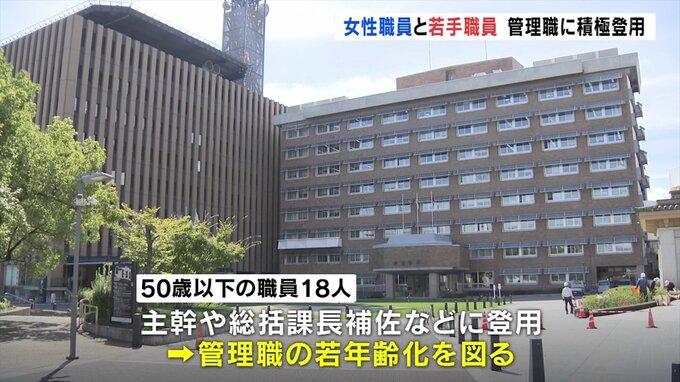その一方で管理職の若年齢化を図るため50歳以下の職員18人を主幹や総括課長補佐などに登用しました。