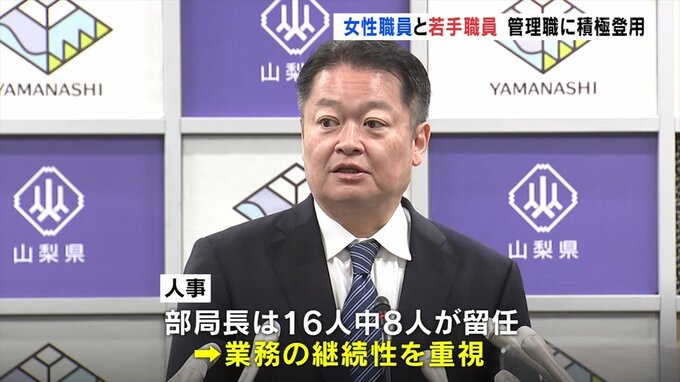 業務の継続性に配慮しつつも女性職員と若手職員を管理職に積極的に登用したということです。