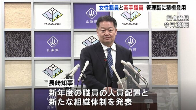 山梨県の長崎知事は新年度の新たな組織体制と人事を発表しました。