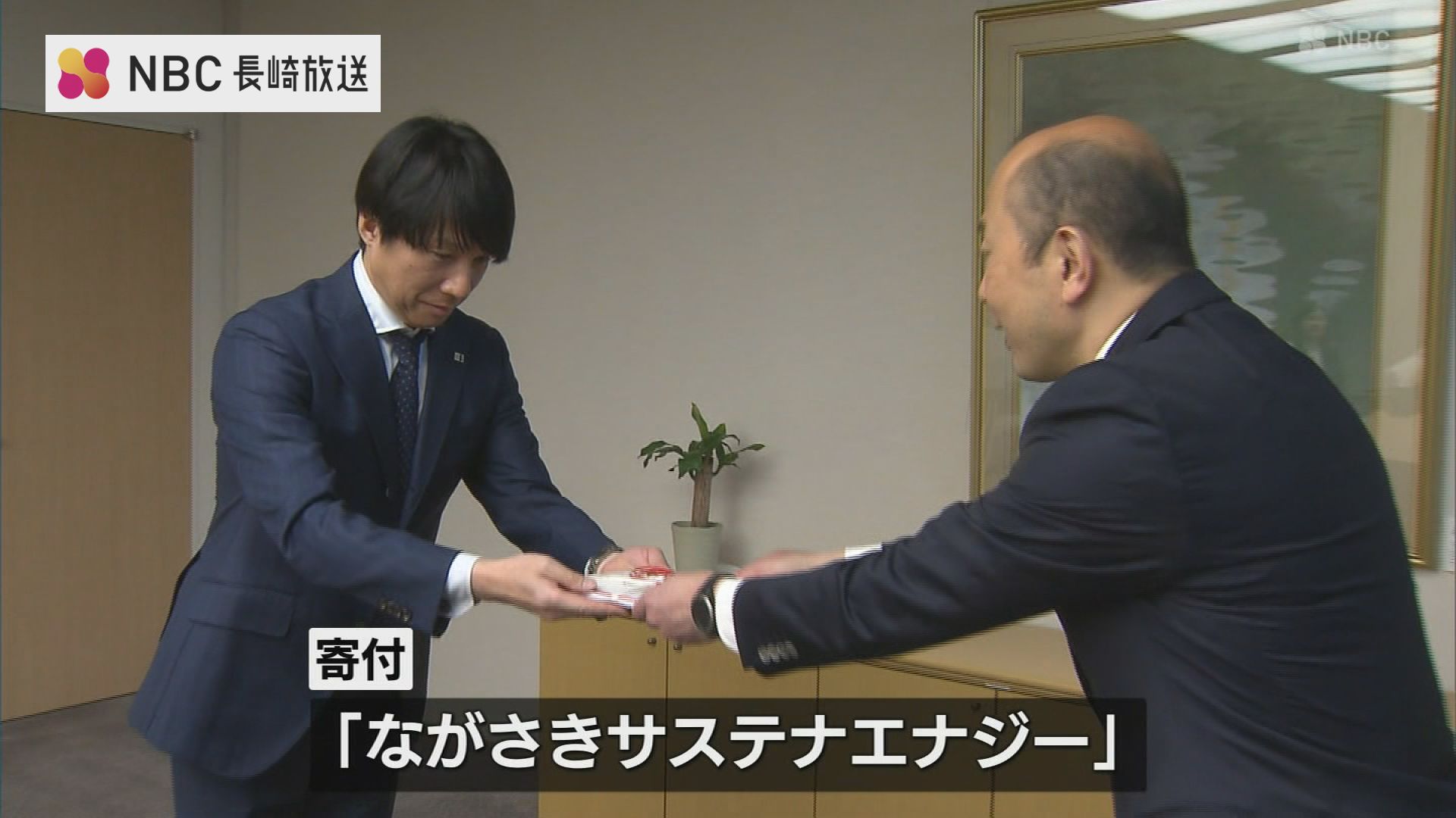 「ながさきサステナエナジー」は2020年に設立された長崎市と地元企業7社による電力会社で、市内のごみ処理施設や三京地区のメガソーラーなどで発電された電力を市の施設に供給。これによって得られた利益の一部、3000万円を25日、長崎市の「ながさきエコライフ基金」に寄付しました。