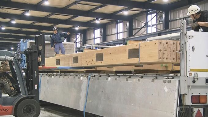 福島県浪江町の企業が製造した建築用の木材が、来年開かれる大阪・関西万博に向けて運び出されました。万博の会場で使われる木材を製造したのは、浪江町の棚塩産業団地にある企業「ウッドコア」です。大阪・関西万…