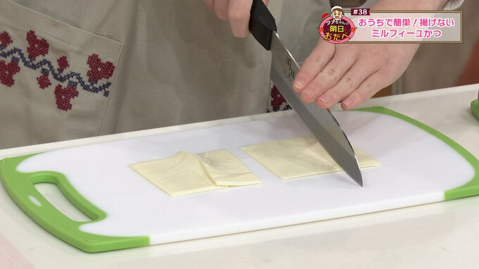 1.スライスチーズを2等分に切る