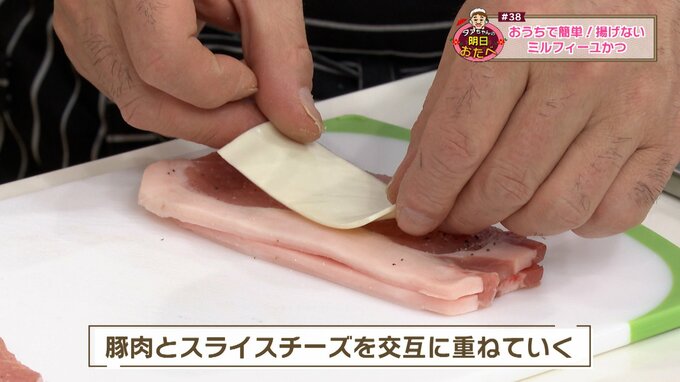 5.豚肉とスライスチーズを交互に重ねていく