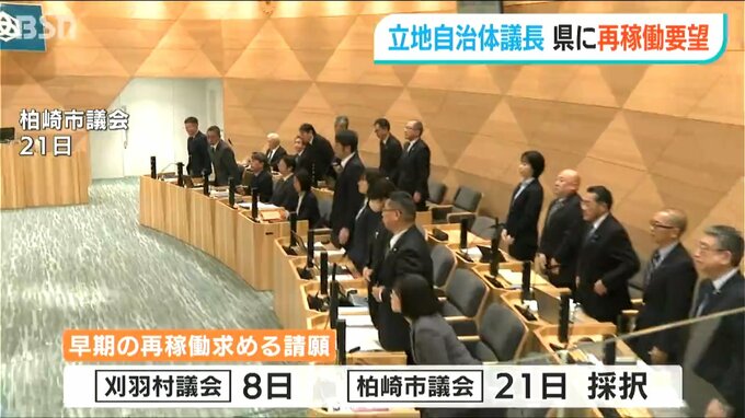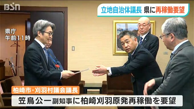 新潟県 柏崎市と刈羽村の両議会の議長が25日、資源エネルギー庁を訪れ要望活動を行いました。26日には県庁を訪れ、柏崎刈羽原発の早期再稼働を要望しました。