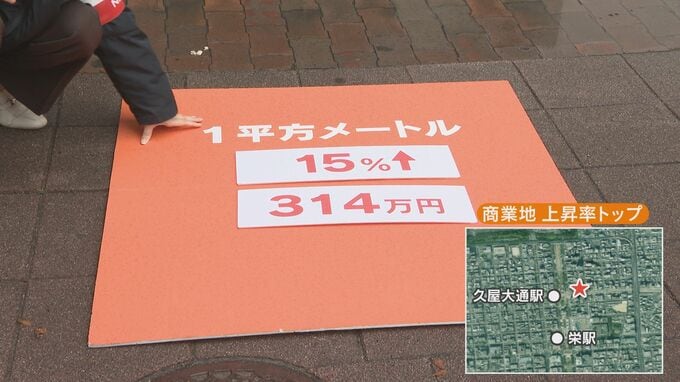 「住宅地の上昇率トップは中区上前津のこちらの場所です。1平方メートルあたり、97万円で上昇率は16.2パーセント。去年に比べて、13万5000円アップしています」