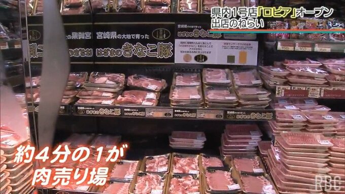国際通りに県内初出店したスーパー「ロピア」。店内のおよそ4分の1を占める肉売り場が特徴で、総菜の品ぞろえにも力を入れています。