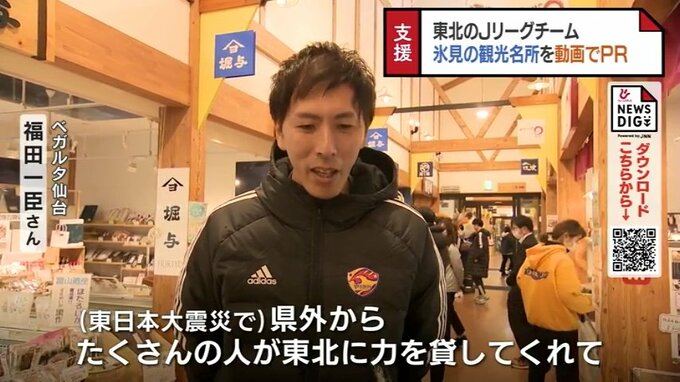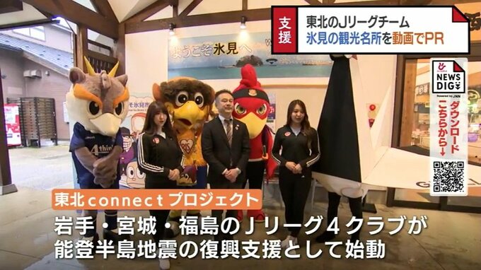 東北のJリーグチームが能登半島地震で被害を受けた富山県氷見市を支援です。マスコットキャラクターが、市内の観光名所などを巡る動画が撮影され、氷見を全国に発信します。