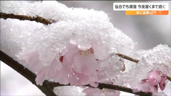 もうすぐサクラも咲こうというのに冬に逆戻りしてびっくりした人も多いのではないでしょうか。26日の宮城県内は低気圧の影響で雨が次第に雪へと変わり、仙台市内では早咲きのサクラに雪が積もりました。雪は26日夜…