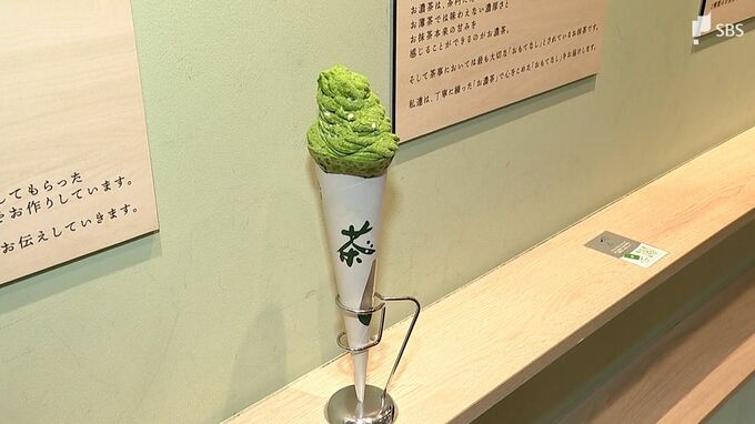 熱海駅から徒歩10分ほどの熱海銀座商店街に、2023年12月にオープンしたばかりの「熱海さとり本店」。SNS映えするお茶スイーツが楽しめると若い世代を中心に人気を集めています。この店が軒を連ねるエリアはいま、静岡県内で最も地価が上昇しています。