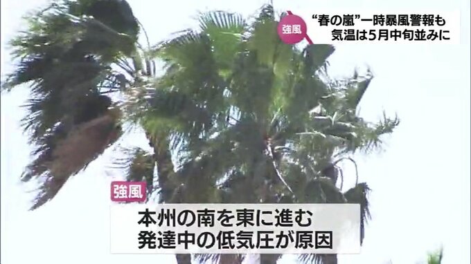 26日の宮崎県内は強い風が吹き、まさに「春の嵐」となりました。宮崎市には、一時、暴風警報が発表されました。(大田愛理リポーター)「雨もあがり、青空が広がる宮崎市ですが、ご覧の通り立っていられないほどの…
