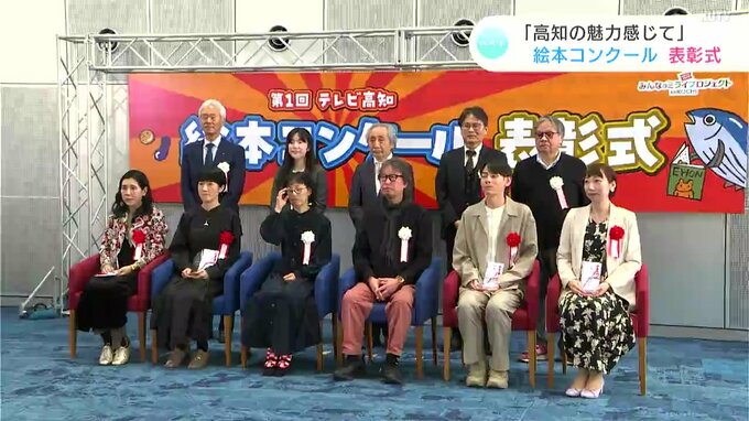 子どもたちの夢を応援する「みんなのミライプロジェクト」の一環としてテレビ高知が開催した「第一回テレビ高知絵本コンクール」。26日、表彰式をテレビ高知で開き、大賞や優秀賞などの受賞者と、審査員を務めた絵本作家の宮西達也さんや柴田ケイコさんらが出席しました。