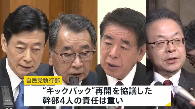 自民党執行部は、“キックバック再開”を協議した会議に出席した4人の幹部の責任は重いと考えており、27日も残る幹部2人の聴取を進めた上で、「選挙での非公認」以上の処分を下す方針です。