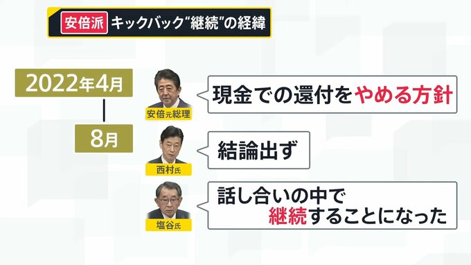 一方の“キックバックの開始”の解明を巡っては、岸田総理が派閥の会長だった森元総理への聴き取りを行えるのかがカギとなりそうです。