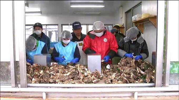 「すギョいバイト」と銘打ったこの取り組みは石巻市の一般社団法人が企画したものできのうは石巻市沢田地区のカキ処理場で、地元の高校2年生4人が出荷作業を手伝いました。カキの殻むきは初めてという生徒たちは身を傷つけないようにナイフを動かし、徐々にコツをつかんでいる様子でした。