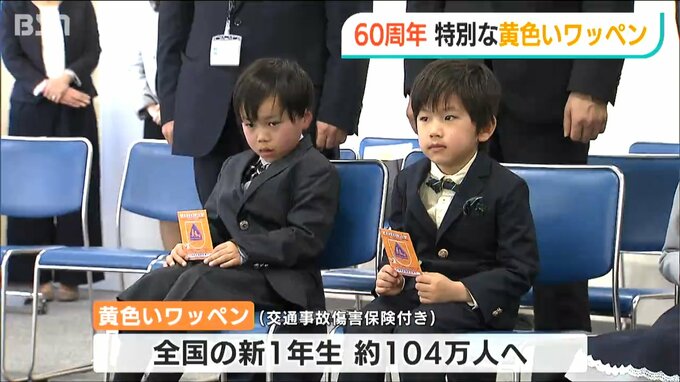 このワッペンには交通事故の保険もついていて、全国の新1年生およそ104万人を色と保険で守るということです。