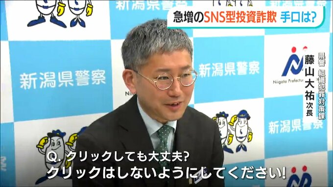【組織犯罪対策課 藤山大祐 次長】「クリックはしないでください!SNS型の投資詐欺に導入されたり個人情報を盗まれる可能性があります」