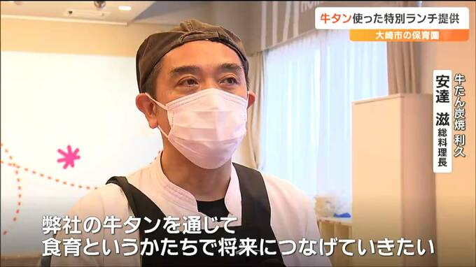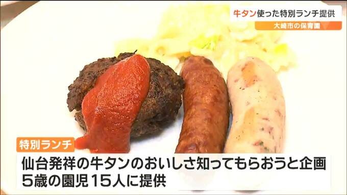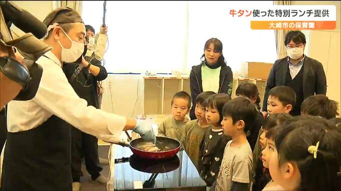 宮城県大崎市で27日、保育園の園児たちに牛タンを使ったハンバーグなど特別ランチが振る舞われました。
