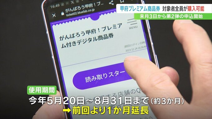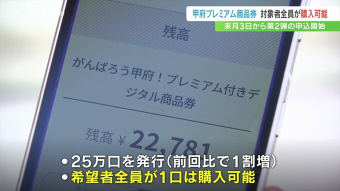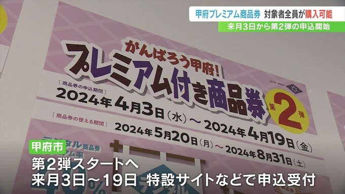 甲府市は経済効果も大きいことから第2弾の発行を決め、4月3日から19日まで特設サイトなどで申し込みを受け付けます。