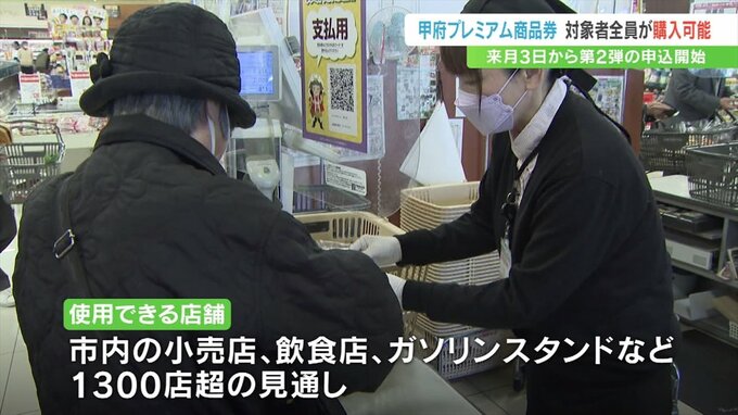 商品券の使用は甲府市内の小売店や飲食店、ガソリンスタンドなど1300店を超える見通しです。