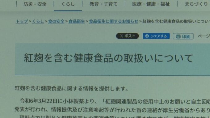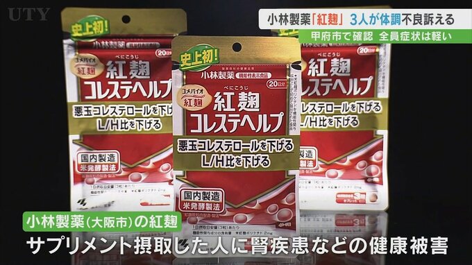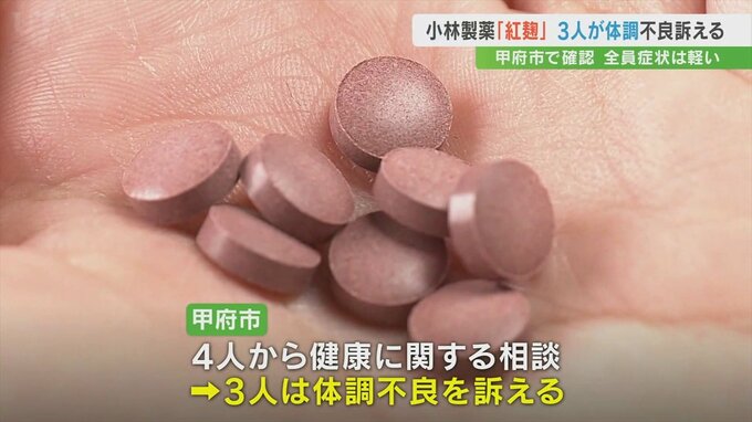 甲府市に住む3人が小林製薬の「紅麹」をめぐって体調不良を訴えていることが分かりました。