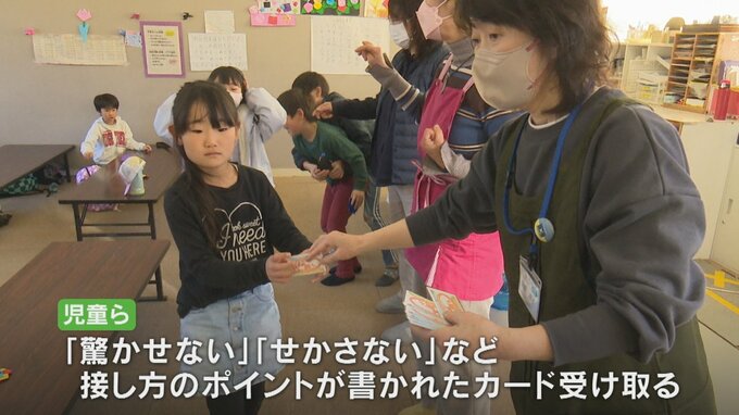 最後に児童たちに、認知症の人への接し方として「驚かせない」「せかさない」などのポイントが書かれたカードが手渡されました。