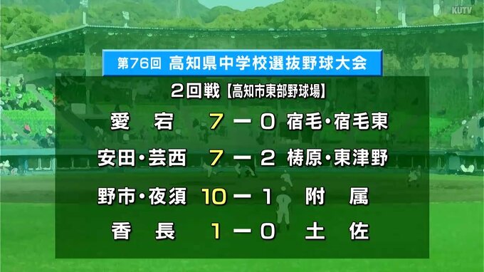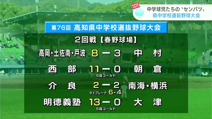 中学球児の“春のセンバツ”「高知県中学校選抜野球大会」は、3日目の27日、2回戦8試合が行われ、ベスト8のチームが出そろいました。高知市東部野球場の結果です。