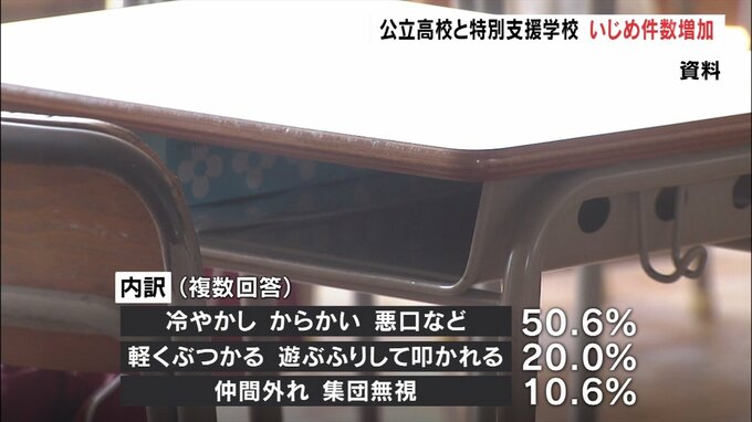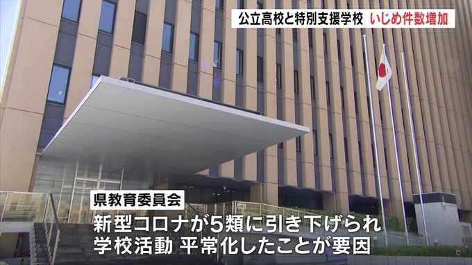 県教育委員会によりますと定時制を含む公立高校と特別支援学校、合わせて48校で2023年11月から2024年2月末までに認知されたいじめの件数はのべ59件で、昨年度の同じ時期と比べ8件増加しました。