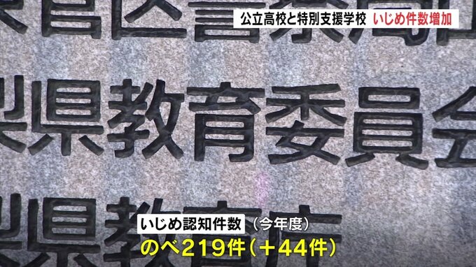今年度、山梨県内の公立高校と特別支援学校で認知されたいじめの件数は219件で昨年度より増加しました。