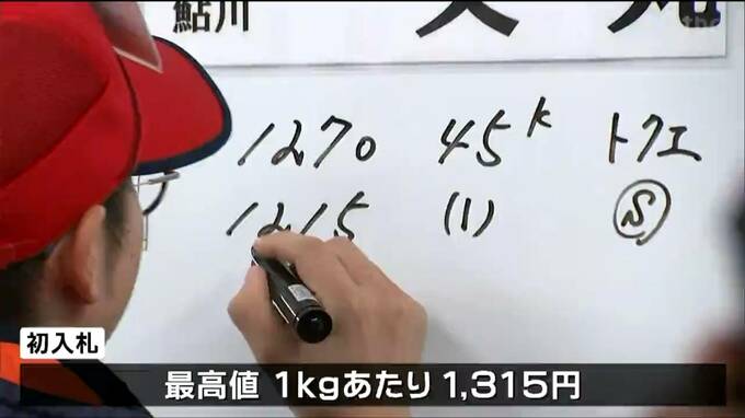 初入札は、ご祝儀相場で1キロ当たりの最高値が1315円となりました。