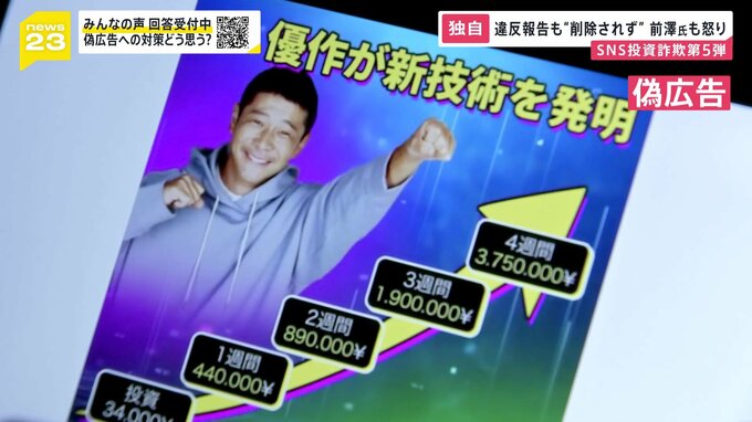 「有名人をかたるSNS投資詐欺」についてです。ニセの広告は誰が出しているのか? news23が取材を進めると、広告主の多くは香港にある会社だと判明し、業者を直撃しました。ニセ広告はなぜ掲載され続けるのか? 専門家は法律によるITプラットフォーマーの規制が必要だと指摘しています。