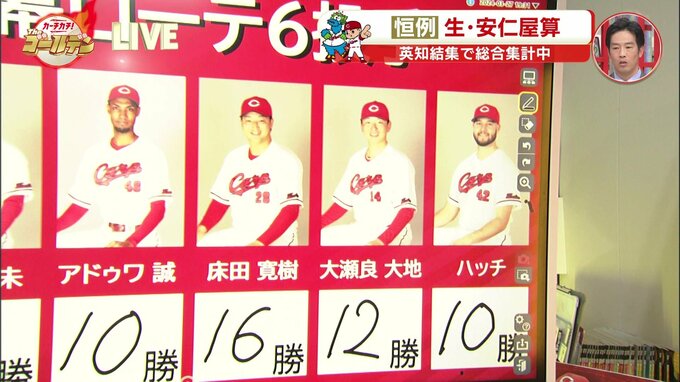 床田寛樹16勝 大瀬良大地12勝 ハッチ10勝