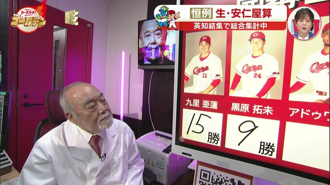 九里はね、ぼく、防御率の1位を獲ってもらいたかったんですよ。だから本人には「防御率を大事にせよ」と言うたんですけど。九里は15勝。