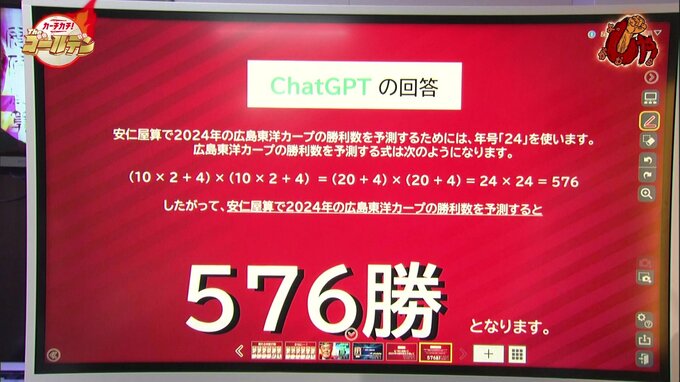 ChatGPTは576。安仁屋算は170台。どっちが、“AI” で正しいかといわれたら安仁屋算のほうが…