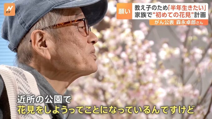 「お医者さんが、桜が咲くのは見られないだろうって最初に宣告してきて、でもね、どうも見られそうなんですよ。今月末に家族みんなで集まって、近所の公園で花見をしようということになっている。人生で初めてですね、家族で花見って」